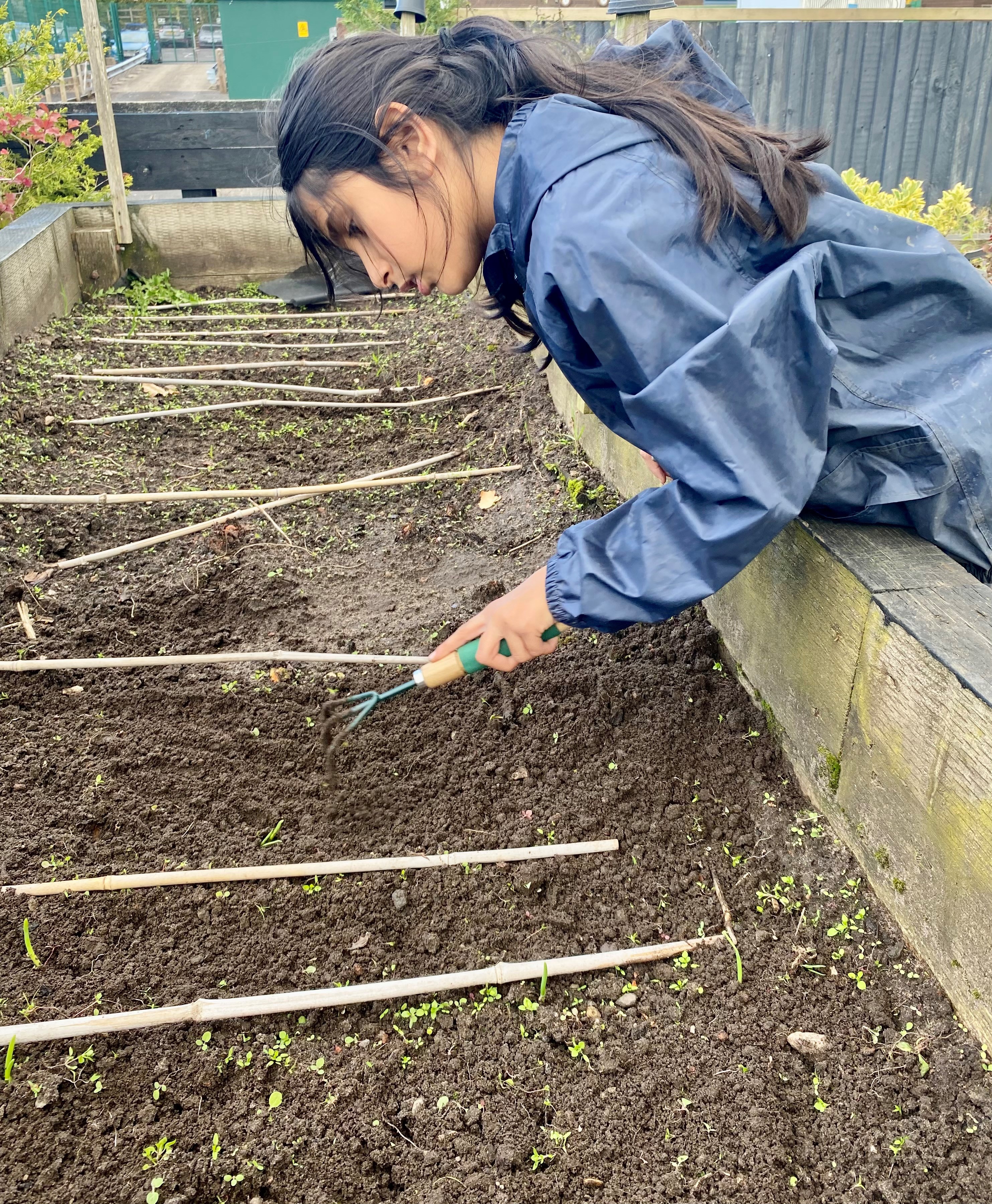 It’s a hive of activity as they sweep, rake, paint pallets, tidy the greenhouse, and cover soil to protect it from weeds. One pupil shares: “it can be cold, but I love being in the outdoors and tidying up.”